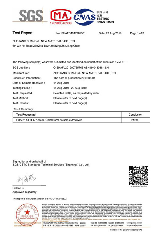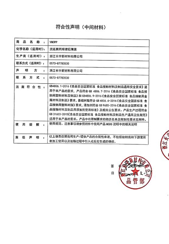 Changyu jest pionierem i adwokatem „przezroczystego filmu tlenku aluminiowego do opakowania” na chińskim rynku, podjęliśmy nieustanne wysiłki na rzecz rozwoju i promocji tego produktu, Changyu jest również konsekwentem trwającego dużego krajowego standardowego projektu ”ogólne zasady bariery Trenie Trening Plastics Films i nasykalne filmy do opakowań żywnościowych.